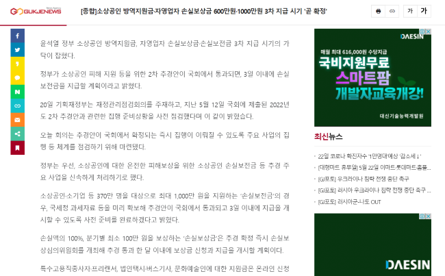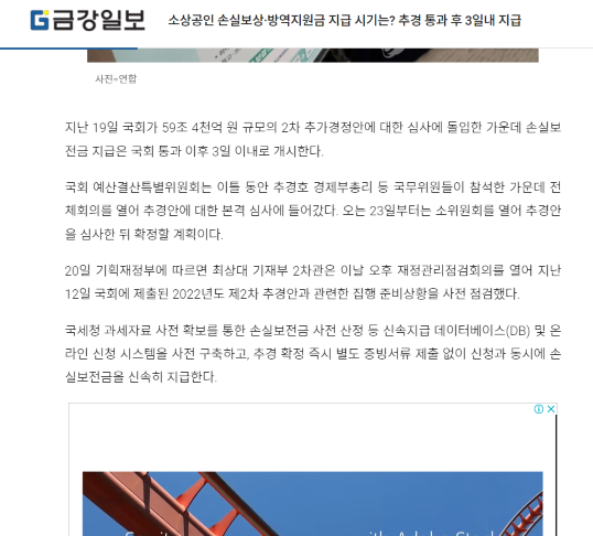 안녕하세요. 직장인입니다. 요즘 다들 오르는 물가와 코로나 사태로 인해서 재난 지원금을 필요로 하는 자영업자나 국민분들 굉장히 많으실 텐데요. 그러다 보니 요새 소상공인 손실 보상금에 대해 윤석열 대통령이 공약을 지킬지에 대해 다들 촉각을 곤두세우고 있습니다. 정부는 예결위에서 지난 12일의 2차 추경에 대해서 논의를 했는데요.